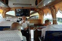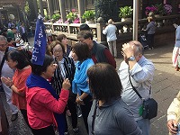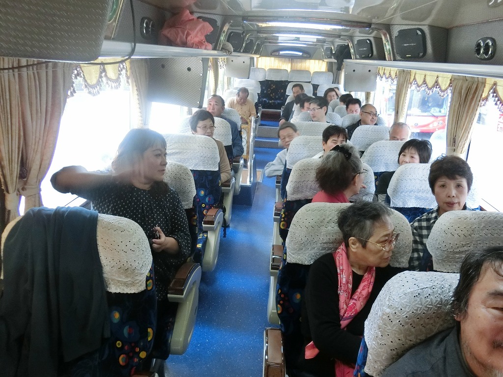 | 専用バス2台に分乗して故宮博物院へ | ![]() |