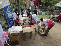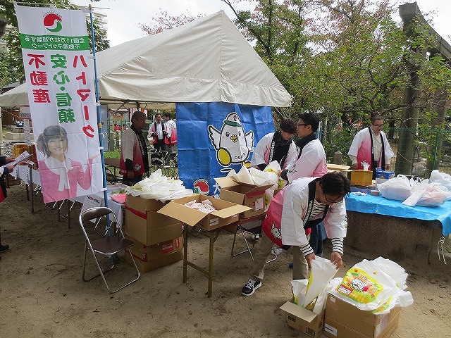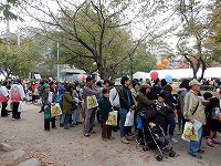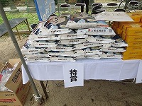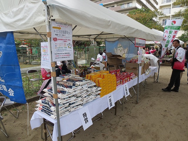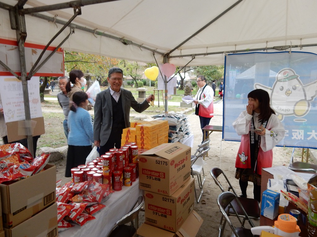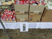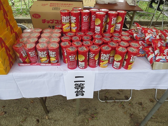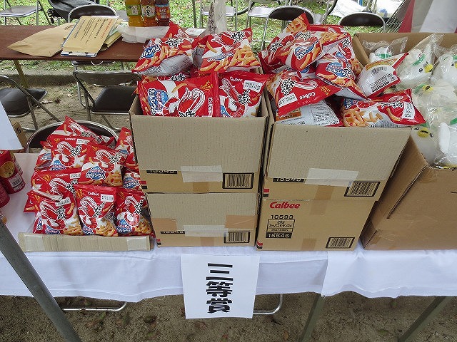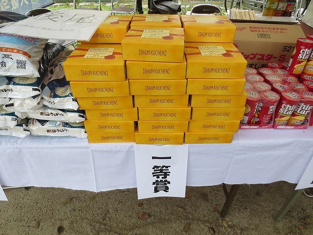 13時30分から、 くじ引きを行いました(1回限り) 特賞 福井産 コシヒカリ 5Kg 20本 、 1等 バームクーヘン(ワンロール) 40本 、 2等 チップスター 200本 、 3等 かっぱえびせん 140本 全400本(無料)空くじ無し |
