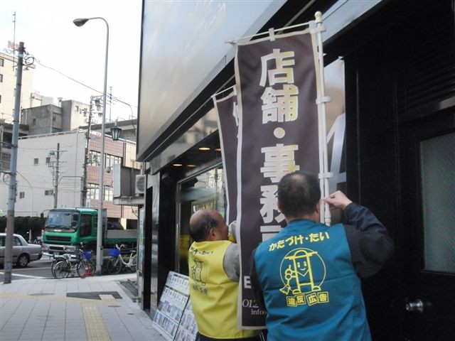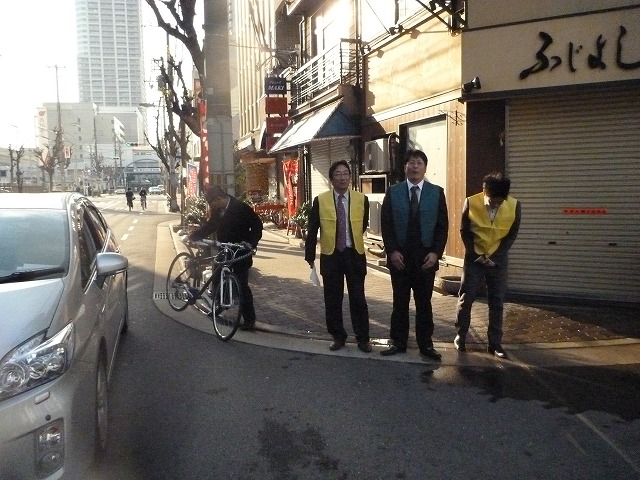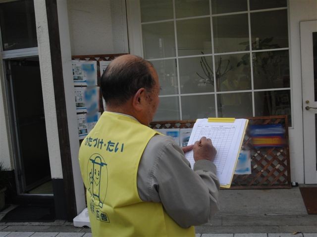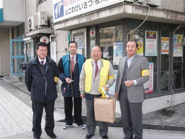 西区地区5名・4名の2隊、港区・大正区地区9名1隊、 浪速区地区5名1隊の4隊で指導を実行しました。 写真は浪速区地区の実行隊の撮影分です。 |